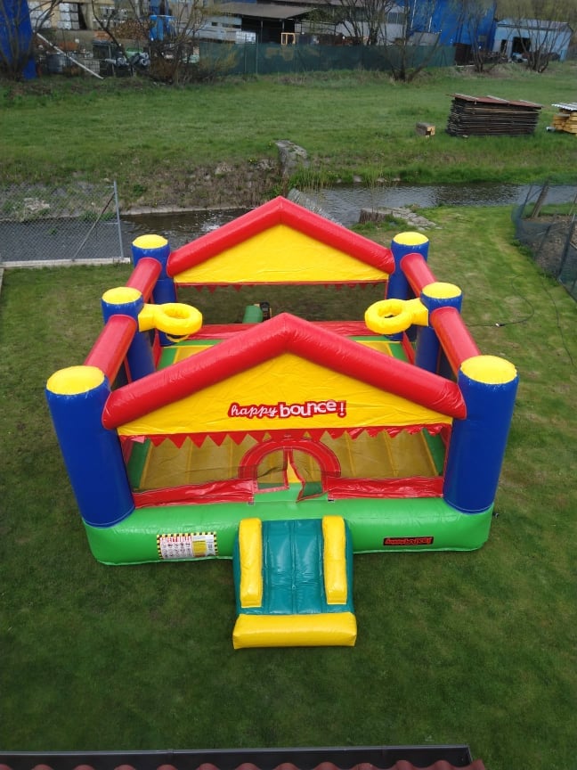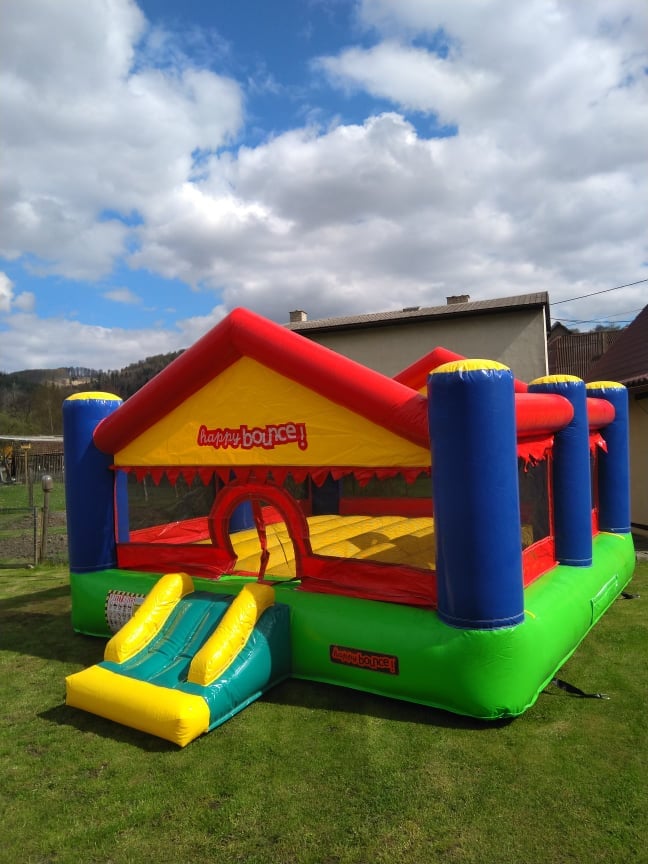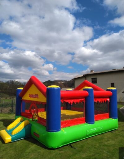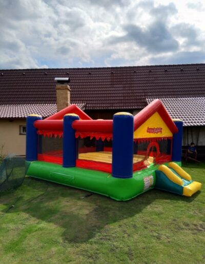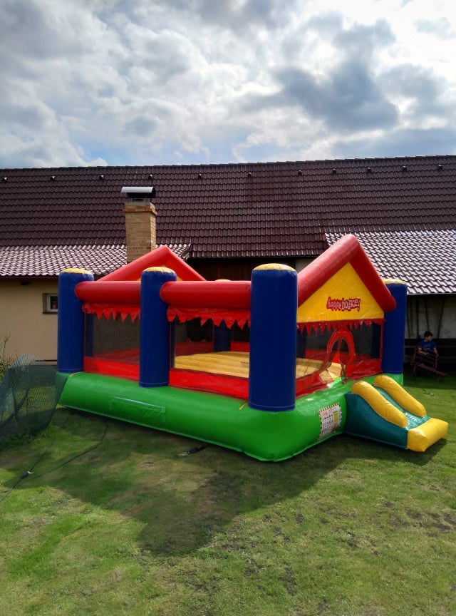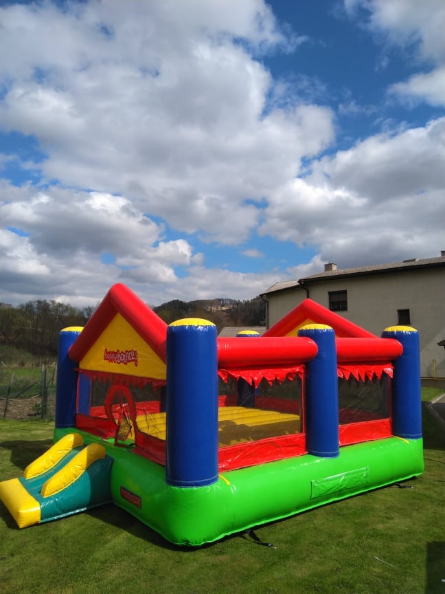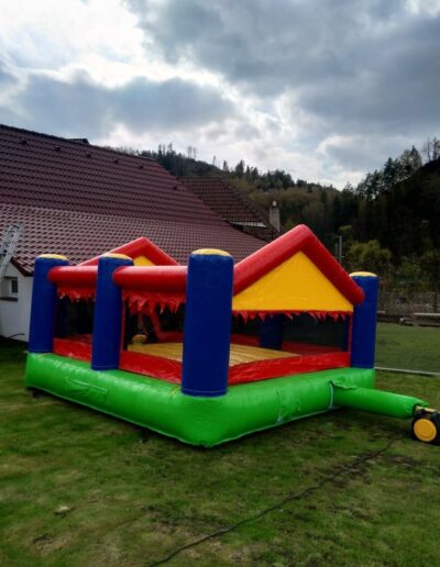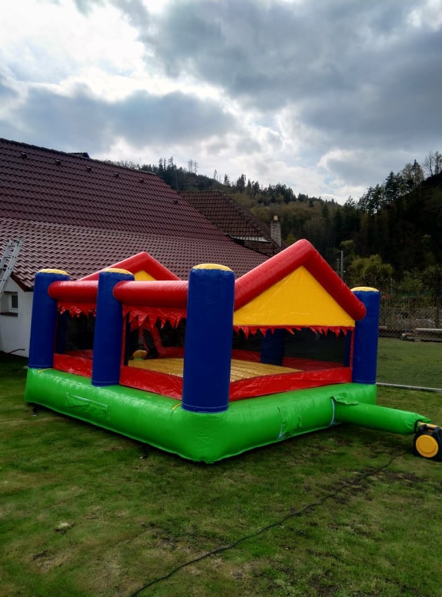 Pronájem profesionálního skákacího hradu o rozměrech 4m x 5m s výškou 2,15m a plochou 20m2. Lehký a přenosný s váhou 55kg, který se snadno dopraví v kufru osobního auta, dodávce či na vozíku. Nabízíme možnost dovozu za 10 Kč/km.
