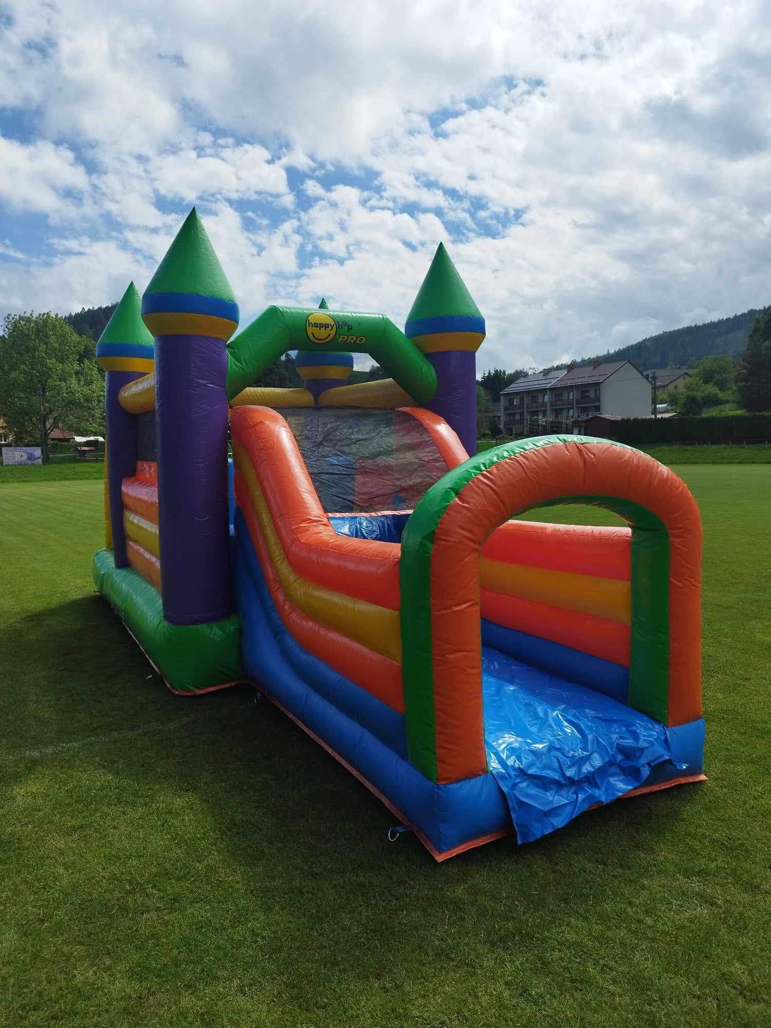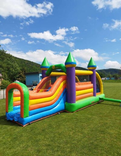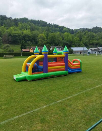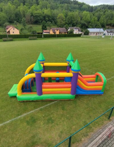 Pronájem skákacího hradu XXL PŘEKÁŽKOVÁ DRÁHA PROFI Rozměr 8,4m x 2,6m výška 3,15m.