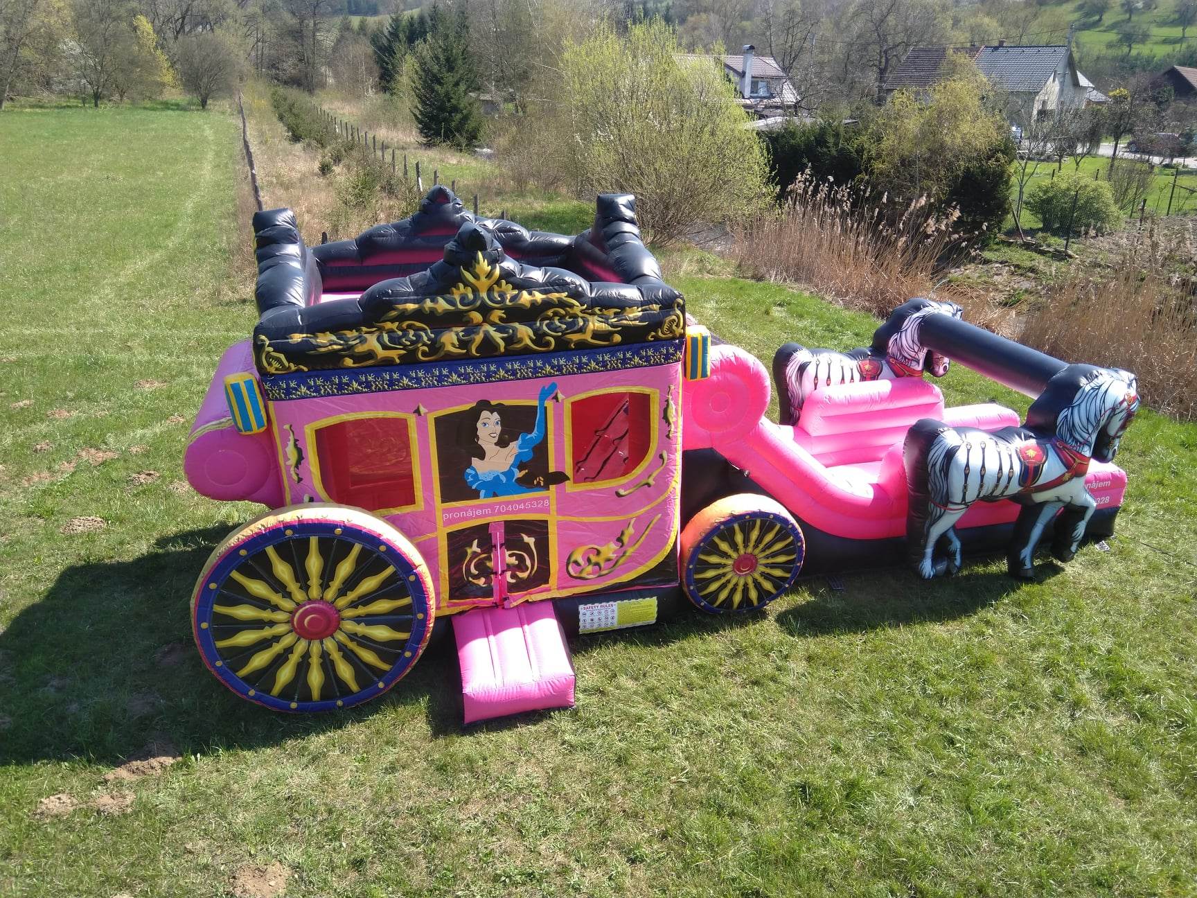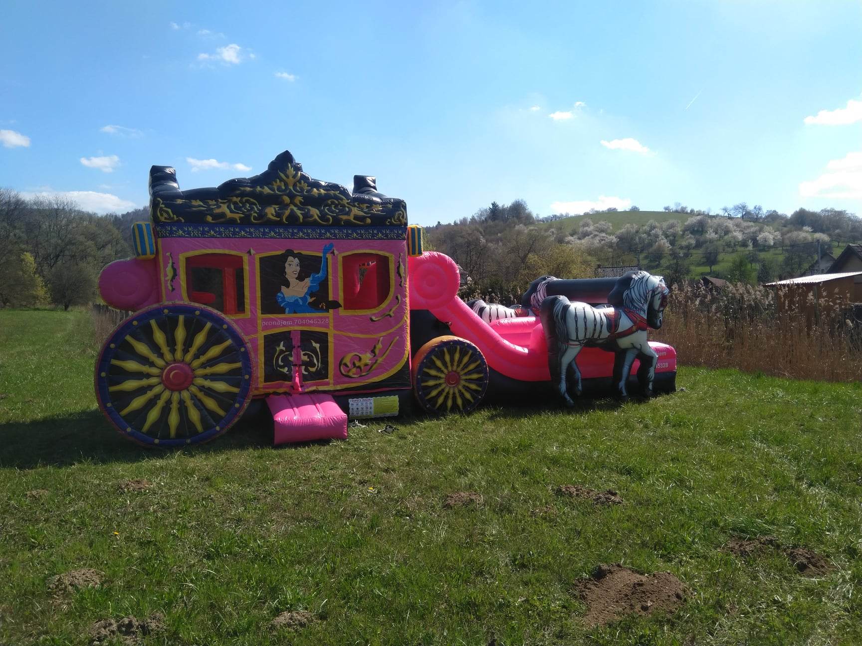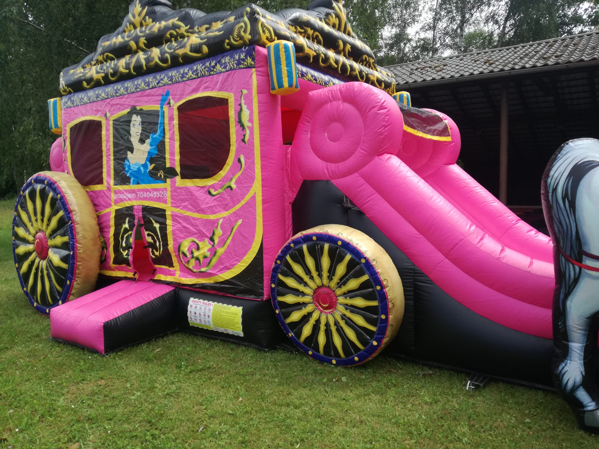 - Možnost dovozu: Cena 10 Kč/km, složení s nafouknutím za 1000 Kč, rozložení za 1500 Kč.